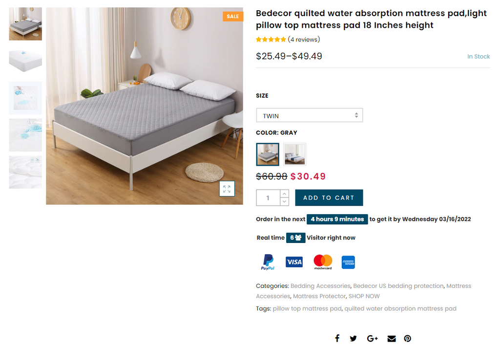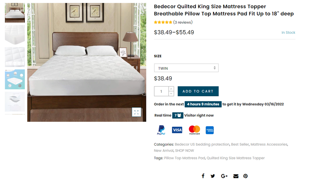 Then water absorption mattress pad is polyester fiber, which can also be directly translated as Down alternative, which is a man-made material. The filling is polyester fiber, usually with a cover, and the texture is cotton, microfiber and bamboo fiber bamboo. It's cheap, you can get it at Macy's for $20 off. Thickness 1-2inch. The disadvantage is that after a year or two of use, it will collapse and not be soft. But it's cheap, and it's not a pain to change.