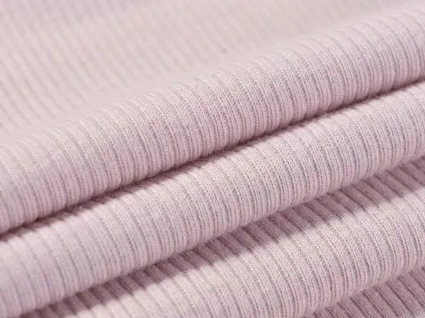Ribbed knit is a knitted fabric that consists of a yarn that forms loops in longitudinal rows on the front and back in sequence. Ribbed knitted fabrics have the dispersion, hemming, and extension of plain fabrics, as well as greater elasticity. 1x1 ribbing looks very similar to plain fabrics, but ribbing has a looser structure, is more elastic, and is generally not divided between the front and back. While other structures of ribbing such as 2x2, 2x1 structure, etc. are easy to distinguish from other fabrics due to the special nature of their structure.
