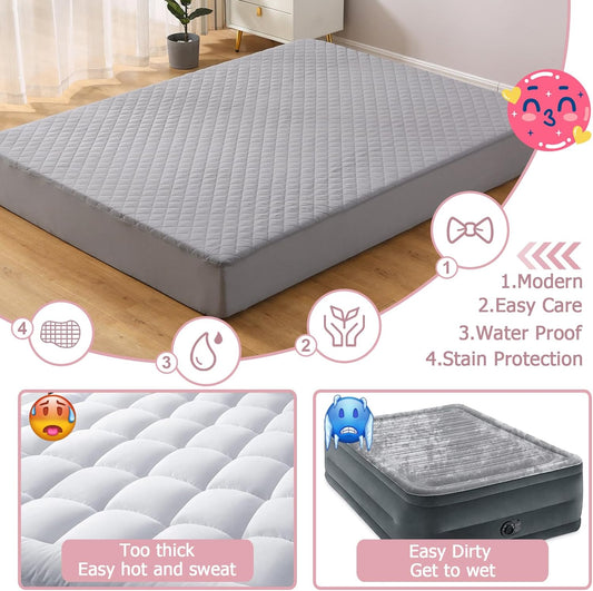 Bedecor Air Mattress Pad Waterproof Mattress Cover Gray, Quilted Air Bed Mattress Protector Heavy Absorbent Soft Breathable & Noiseless Mattress Pad Fitted Deep Pocket Up to 18"